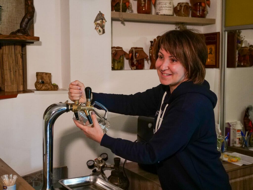 Im Stadtzentrum sind die Schäden mit Ausnahme des Verwaltungsgebäudes deutlich weniger sichtbar. Unweit des Unabhängigkeitsplatzes betreibt Lyudmyla Servetnyk das Oliv’e Café. Eröffnet hat die 53-Jährige im September 2021, ein halbes Jahr vor dem russischen Großangriff auf die Ukraine. Im Mai verlor sie bei einem Bombardement einen zweiten Standort in einem Dorf nahe Charkiw. „Unsere Camping-Hütte in Alt-Saltivka ist auch dahin“, sagt sie.