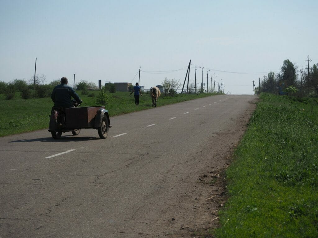 Vyacheslav and Julia, who do not want to tell their family names, are also parents of two children and stayed in Chermalyk. They got used to the situation, but unease is always present. Vyacheslav does not even want to point with his finger towards the locations, from where the shots can be heard. “I am afraid to be here with my children. But I do not have another option,” he says. He was working in the city but had no money for a new flat. Twice a day there was a bus to the city, he says. From Mariupol also hitchhikers can be seen, who need to go into the “grey zone,” as the villages in the buffer zone are also called.