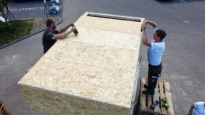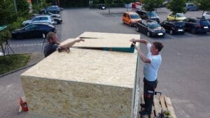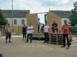 Trotz aller Widrigkeiten steht am Ende des Tages der Rohbau des Prototyps. Zwei Wochen später übernimmt der Verein noch den Innenausbau, stattet das Little Home mit Bett und Küchenzeile aus und zieht die Trennwand für die Dusche. „Um die Wasserversorgung kümmern wir uns noch“, merkt Lüdecke an. Der letzte Feinschliff steht also noch aus – und dann muss der Hänger noch durch den TÜV. Lüdecke zeigt sich mit dem Ergebnis zufrieden. “Alle haben mega mit angepackt. Wir sind viel weiter, als ich erwartet habe”, lobt er bereits zum Ende des Aktionstages.