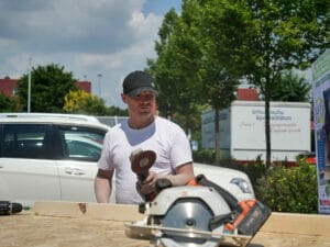 Nur: Ob das Vorhaben tatsächlich gelingt, wird sich erst später zeigen. Die Freiwilligen bauen das Little Home in Größe M, wie es später am Eingangsschild steht, als Prototyp. Einen Plan dafür hat Lüdecke vor Augen, jedoch nicht verschriftlich. Hinzu kommt, dass die neue Holzhütte den kritischen Augen des TÜV standhalten muss. Nur dann darf es im Straßenverkehr transportiert werden. Der Vorteil: Der Verein kann es zur Not wie ein Fahrzeug auf öffentlichen Parkplätzen abstellen. Hier war es in der Vergangenheit zu Problemen mit der Stadt Hannover gekommen, als sich eine Bewohnerin weigerte, ihren Platz zu räumen. „Drei Little Homes wurden danach beschlagnahmt“, ärgert sich Lüdecke noch immer über den Vorfall, ohne der Stadt einen Vorwurf zu machen. Er betont: „Die Zusammenarbeit mit dem Tiefbauamt war wirklich gut.“