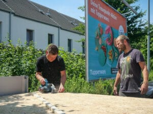 Besonders gefällt ihr, dass auch aktuelle und ehemalige Bewohner:innen eines Little Home mit anpacken. So tauschen die Teilnehmer:innen Erfahrungen im direkten Gespräch aus, auch beim gemeinsamen Mittagessen, das der Supermarkt als Partner der Aktion spendiert. Uwe beispielsweise lebt seit rund drei Monaten in einem Little Home in Berlin. „Ich wurde auf der Straße angesprochen, ob ich daran Interesse habe“, erzählt er. Das Little Home sei deutlich besser als die Straße oder eine Notunterkunft, in der immer wieder geklaut werde. „Ich brauche meine Klamotten nicht mitschleppen“, sieht er einen weiteren großen Vorteil. Angesichts der Hilfe, die er erfahren hat, sei es für ihn selbstverständlich, nun auch mit anzupacken.