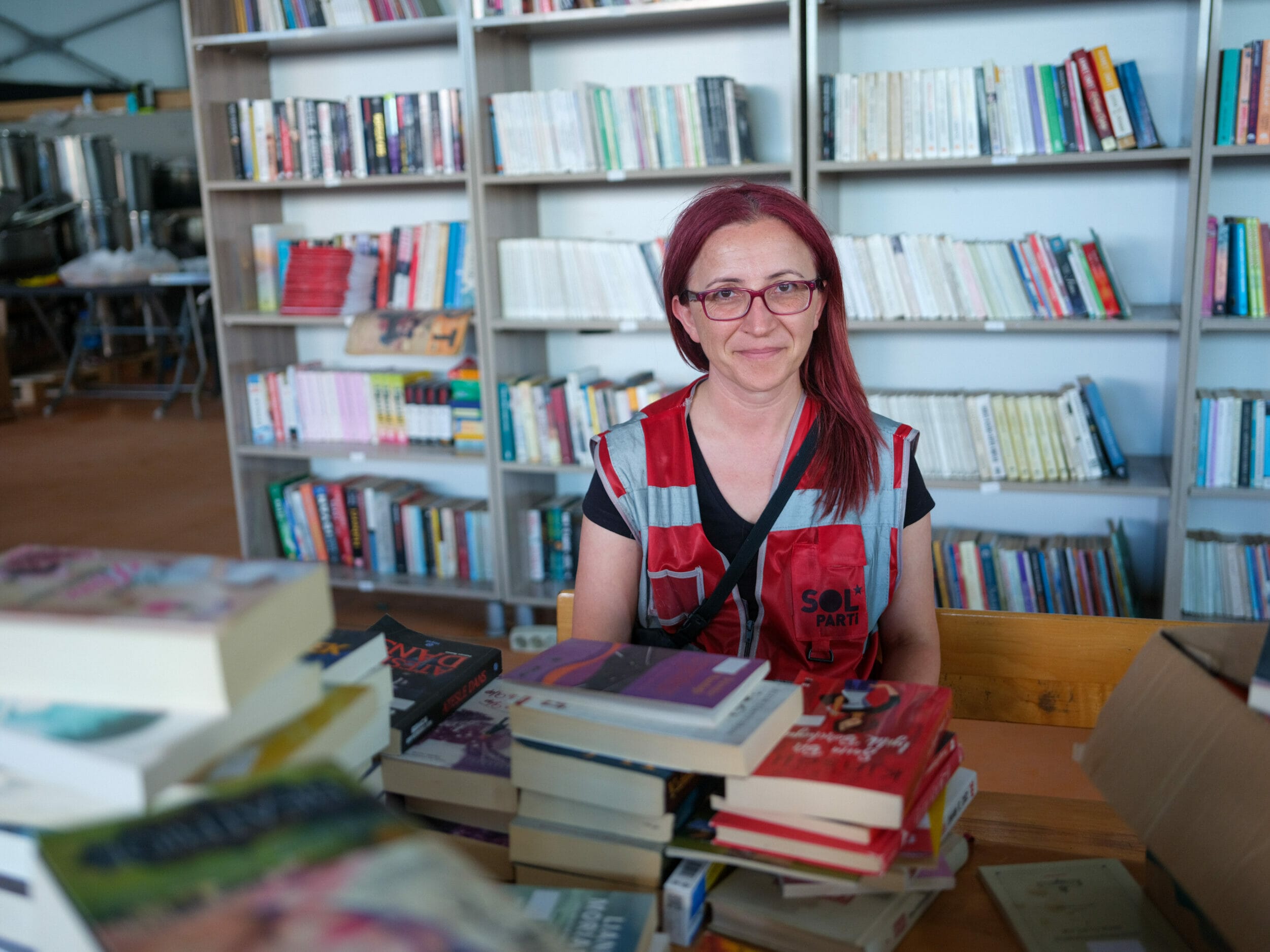 Hatay rund drei Monate nach den schweren Erdbeben: Von Aufbauarbeiten ist überraschend wenig zu sehen, teilweise türmt sich noch der Schutt neben den eingestürzten Häusern, manchmal ist immerhin er hügelweise gesammelt worden. Hinter fehlenden Fassaden stechen vollständig möblierte Zimmer hervor. Überlebende sind zu Verwandten aufs Dorf gezogen oder leben in Zelten. Direkt neben einem der Zeltlager in Defne sitzen Helfer:innen in einer Lagerhalle, wo sich allerhand Spenden stapeln. Draußen ziert ein Wandgemälde, das an die drei bei Polizeieinsätzen Getöteten Ali Ismail Korkmaz, Abdullah Cömert, Ahmet Atakan erinnert, das Gebäude. Eine der Helfer:innen drinnen ist Feray Aytekin Aydoğan, Vorstandsmitglied der linken Sol Partei.