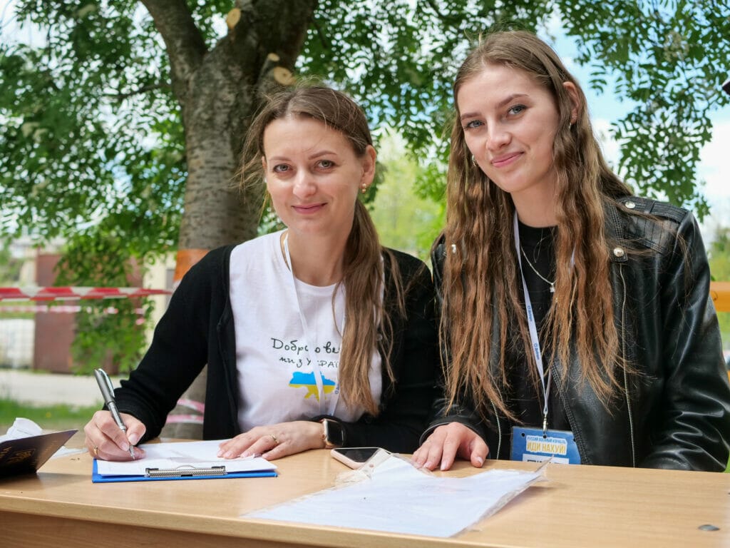 Spichak ist selbst mit ihrer Familie von Charkiw nach Dnipro geflüchtet. Sie lebte bis zu Beginn der russischen Großoffensive im inzwischen besonders schwer vom Krieg betroffenen Stadtteil Saltivka. Wie sie engagieren sich vor allem junge Menschen und Binnenvertriebene in dem Jugendzentrum. Spichak arbeitet am liebsten mit ihrer Mutter am Eingang an der Registrierung: