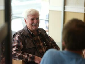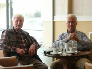 Tsardidis sitzt in einem der Cafés und beobachtet die Jugendlichen, die nach einem kurzen Schultag auf den Platz strömen, um etwas zu trinken. An den kleinen Tischen sitzen und plaudern vor allem ältere Männer, trinken Kaffee und grüßen die Passant:innen auf der schmalen Straße. Als er erfährt, dass seine zwei Gesprächspartner:innen aus Deutschland kommen, greift er zum Telefon und ruft einen Freund und Namensvetter an: Iannis Koulkovinis hat fast 40 Jahre lang in Braunschweig in Fabriken gearbeitet, bis er zurückkehrte. Seine Kinder leben noch heute in Deutschland und Frankreich.