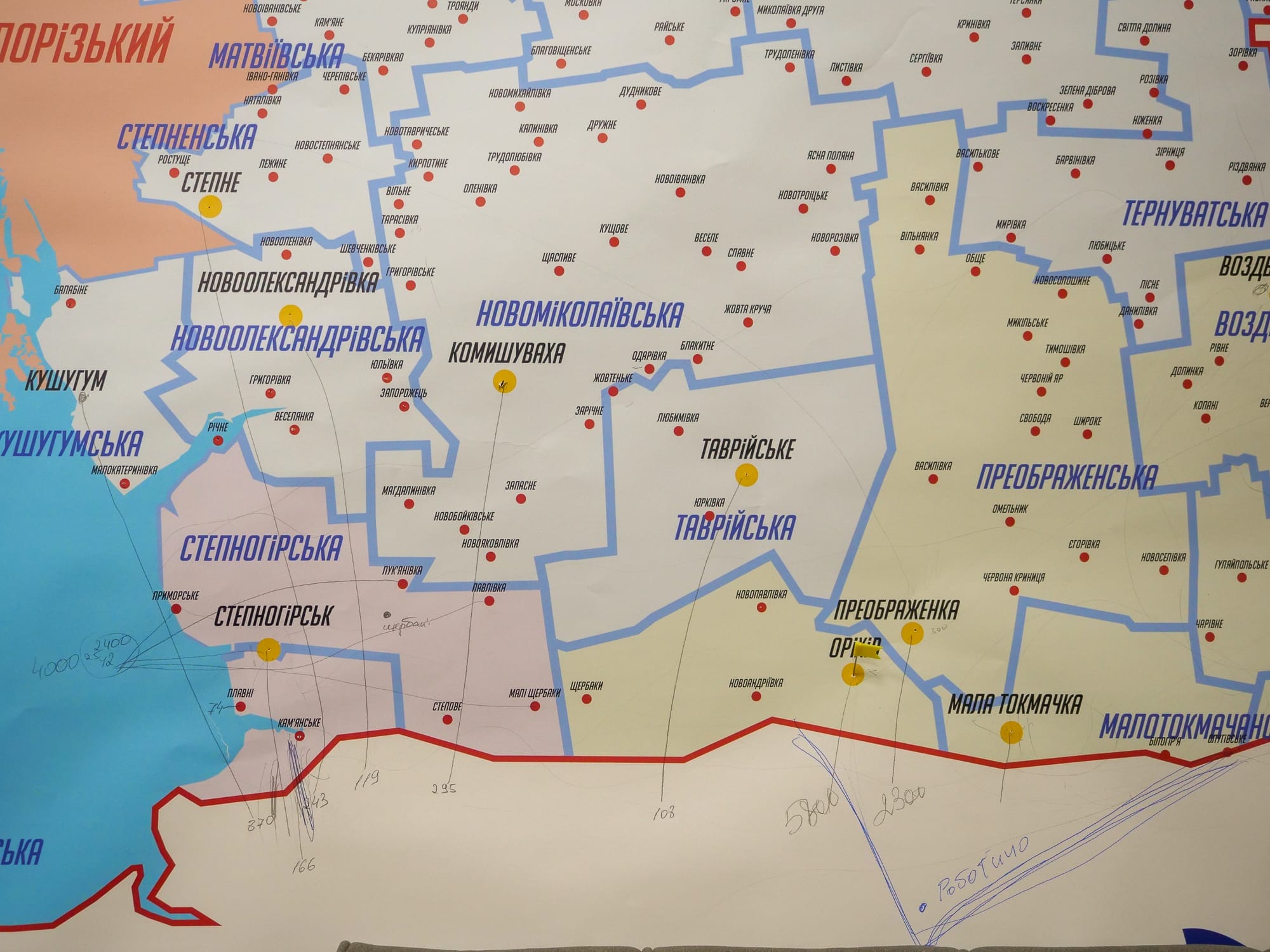 Auf einer Karte an der Wand seines Büros hat er die Zahlen für jede Gemeinde eingetragen. “Wir haben in jeder Gemeinde Ansprechpartner:innen an vorderster Front und kennen die Zahl der Bedürftigen”, erklärt er. Die Idee für die Küche entstand, als Waisenhäuser an sein Restaurant herantraten, das nun als zentraler Knotenpunkt für alle Aktivitäten dient. “Sie baten uns, mit den Lebensmitteln, die sie hatten, zu kochen”, sagt Beluga. Also stellte er ein Team von 45 Köchen zusammen, um täglich 7500 Mahlzeiten zuzubereiten. Er nahm auch Menschen von der so genannten “Straße des Lebens” von Kaminske aus auf und arbeitet immer noch mit den Rettungskräften in Saporischschja zusammen, um die Menschen nach dem Beschuss mit Essen und Wärme zu versorgen.