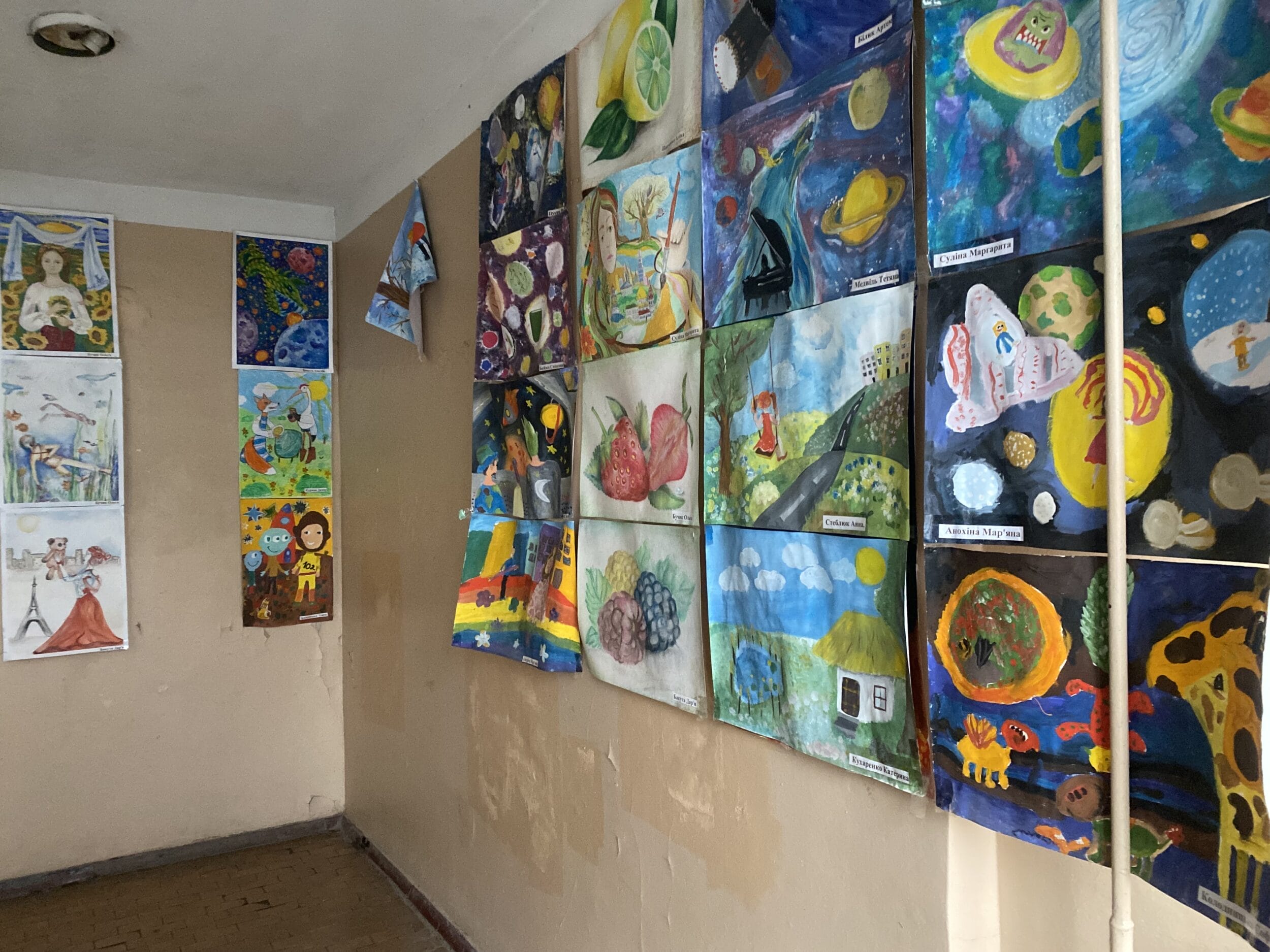 Alles, was von den Kindern von Stepnohirsk geblieben ist, sind die bunten Zeichnungen an den Wänden des Schulgebäudes. Laut Iryna sind sich die Russen des Gebäudes und dessen Nutzung bewusst – und nehmen es weiterhin gezielt ins Visier. Wegen des häufigen Beschusses mussten Iryna und ihre Kollegen ihr Büro in einen kleineren Raum verlegen, der mit einem improvisierten Holzofen beheizt wird. Auf der Fensterbank liegen zwei Äxte, darunter getrocknetes Holz für den Ofen und daneben ein kleiner Feuerlöscher.