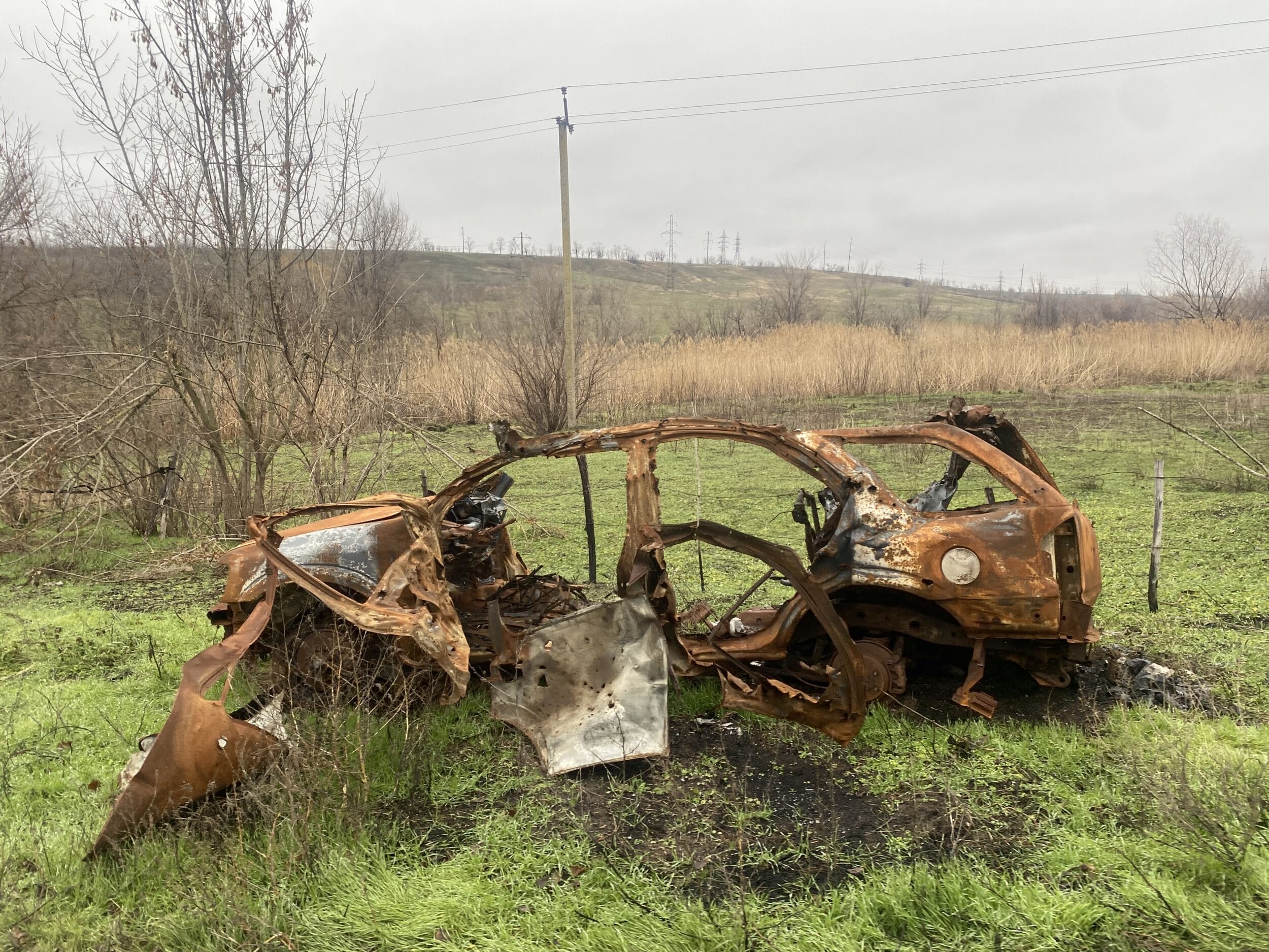 Einer der Freiwilligen ist Mikola. Er ist ein sportlicher Mann, der immer lächelt, selbst auf dem Weg in die kleinen Dörfer oder wenn er erzählt, wie er in seinem Fahrzeug von Artillerie beschossen wurde und ein Splitter die Windschutzscheibe traf. In den vergangenen 18 Monaten hat er Hilfsgüter in frontnahe Städte und Dörfer wie Stepnohirsk geliefert.